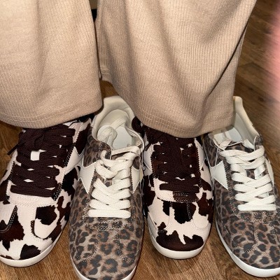 These sneakers are sooooo stinkin’ cute! I bought the cow print (dark brown listing) and the leopard print (light brown). I usually wear an 8.5, but have recently been buying a 9 to have a little extra room because of an ingrown nail, but when I bought the cow print there was only a 9.5 available so I figured I’d try ‘em. They’re actually more comfortable than the size 9 I bought in the leopard print. Honestly, I don’t think an 8.5 would’ve fit me. They’re actually a more narrow sneaker so maybe that’s why…Idk. Regardless, I love them and wouldn’t hesitate to purchase either size again! If you’re on the fence or they only have the next size up, just do it. I don’t think you’ll regret it.