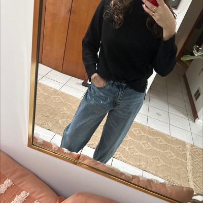 First, I’ll start by saying these are not true barrel leg denims. I have two pairs for free people barrel leg jeans and these do not look like those at all. They fit more like a baggy jean, which is ok with me. They are quite long (I’m 157cm), but long and loose is the look i was going for based on an outfit idea I saw on Pinterest. I own a lot of designer denim, these are good quality for the price. Love them!