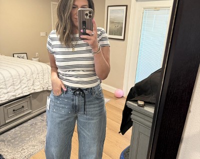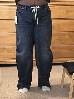First off, let me say that these jeans are super high quality. Thick non stretch denim, which is a real win in my book. Loved the zip/drawstring closure. So fun. The barrel styling was the real problem here. I own several barrel style jeans from different brands and the key to getting it right is in where the barrel begins. You want it to be snug thru the hip and start to flare right at your upper outer thigh so there’s a smooth transition. These “barreled” right under my waist adding extra material in a spot where I definitely didn’t want it. Going down a size didn’t help as the design is the same regardless. Tried the other (non tie waist) version as well and the fit was exactly the same. Sadly, I had to return.