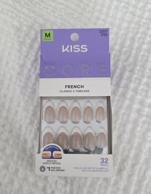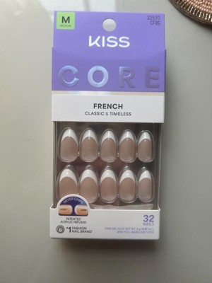 KISS Nails CORE Press-On Fake Nails - Medium Almond - Curiosity - 35ct: ABS, Gloss, 32 Pieces, French Style