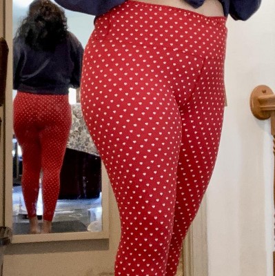 The red love hearts leggings are so cute!! Absolutely perfect for Valentine’s Day, or anytime you want to add a little extra color and cuteness to your workout. I have to disagree with the reviews saying to size up! I ordered a size up since my usual size was sold out and they’re too big. I definitely need my usual size, if not a size smaller! But they’re cute and comfy, great for working out or just hanging out with your Valentine. Once you figure out the right size, that is!