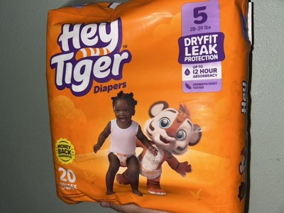 Hey Tiger Disposable Diapers - Size 5 - 20ct: Diaper Weight Range 28 to 39 lbs, Wood Fluff Pulp