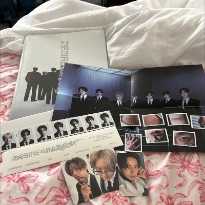 I bought it cause i missed heesung and I wanted to buy a album with him in it. Album is random. The album is pretty big. Its a good concept! Comes with member stamps, mini photos and stickers. Plus the pcs. Some of my pages had this residue on them. I don’t know what it is. But other than that its a good purchase :)
