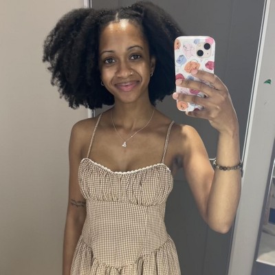 Gorgeous corset dress! I love the brown & white combo. The ladies are right regarding fit — it does run small. I typically wear XXS in Wild Fable dresses, and the XS of this A New Day dress fits as such… which worked in my favor. The corset hugs you in, doing its job. I had to put it on over my head, bc no way was it going on bottom-up. 32D and the girls were sat. Gloriously. Um… it has pockets. That feels monumental. Excited for the perfect sunny day to wear this dress.