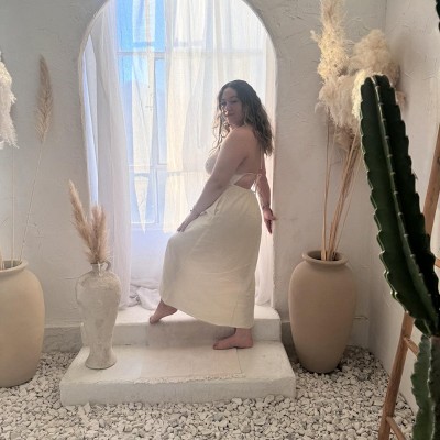 This is so cute. The cut is very flattering! It’s a white linen so the pockets show thru a bit but since it’s not tight it’s not too noticeable. Can’t wait to wear it out!