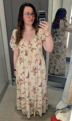 Women's Western Puff Short Sleeve Smocked Midi A-Line Dress - Universal Thread™ Cream Floral 1X