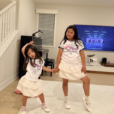 Add cute Sanrio frenemies to your child's closet with this My Melody and Kuromi Ringer Short-Sleeve Graphic T-Shirt. This white ringer T-shirt features a colorful My Melody and Kuromi graphic that showcases the beloved characters in playful style. Crafted from a lightweight jersey fabric blend of cotton, rayon and spandex with a tagless construction, it offers soft, stretchy comfort for active days. The crew neckline and short sleeves with blue ringer trim create a classic silhouette, while the below-waist length and regular fit provide relaxed styling.