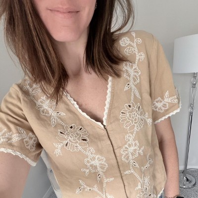 After getting this home, I realized the top closure was missing. Bummed but I’ll sew one on myself because the top is super cute on.