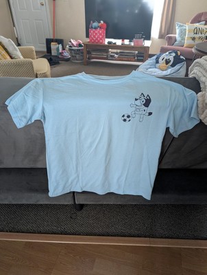 Girls' Bluey Oversized Front and Back Short Sleeve Graphic T-Shirt - Light Blue - 2 of 4Girls' Bluey Oversized Front and Back Short Sleeve Graphic T-Shirt - Light Blue - 3 of 4Girls' Bluey Oversized Front and Back Short Sleeve Graphic T-Shirt - Light Blue - 4 of 4