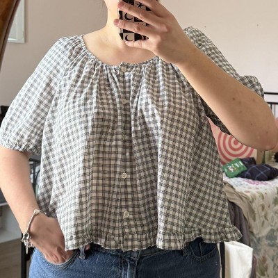 Women's Puff Short Sleeve Button-Up Peasant Top - Universal Thread™ Gray Plaid XL