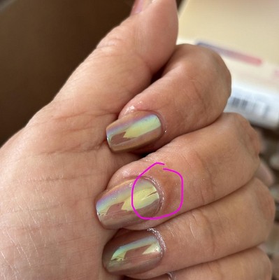 Beautiful nails but some are cracking during application which is why I only gave 1 star. Both thumbs and both middle fingers have cracked as I was applying them. I didn’t use a ton of pressure and applied them the same way as I would any other press on nails. I have a wedding to go to in 2 days so we will see if they hold up until then. I purchased the Glam Embellished Special Effects set in short length in the color Golden Hour Affairs.