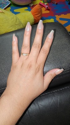 these nails are so pretty. great size, i got size M. I did have to buff them out on the inside where they lay on your nail bed because they were too silky for the glue to stick, I also didn't use the glue that came in the package. when they were all glued on i filled the tips gently but it still chipped slightly. other than that they're great nails!