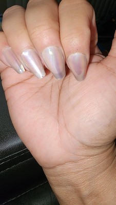 [This review was collected as part of a promotion.] I received this product for free from KISS and Influenster and exchange from my honest opinion. I am split on these nails. I was excited to try the shape because it’s definitely not my normal go-to. Thankfully, there were lots of different sizes included so that made it a lot easier to pick ones that didn’t just look like all of my fingers were thumbs lol. The quality is nice. The durability is nice. I really like the chrome, cat-eye, shimmer, pearl effect we’ve got going on!! These did pop off quite a few times for me. I do think it’s because of the nail shape and just cause I’m not used to wearing it.