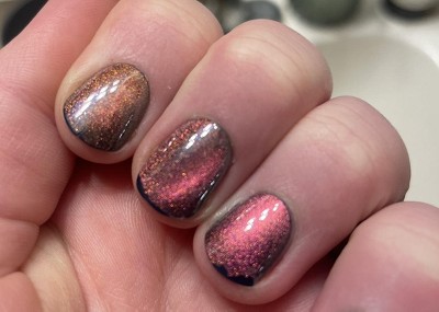 easy to apply, loved the color and metallic coat. not durable at all though, I didnt think I was too hard on my nails but they were chipping and peeling within a day.