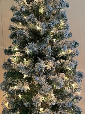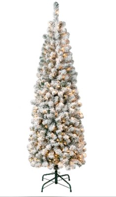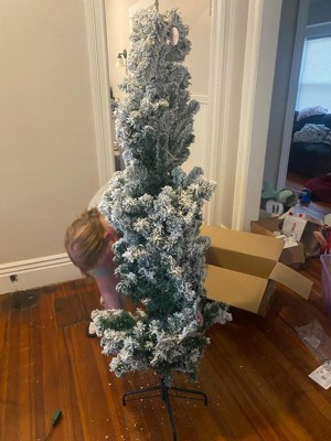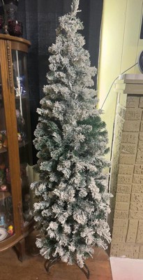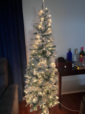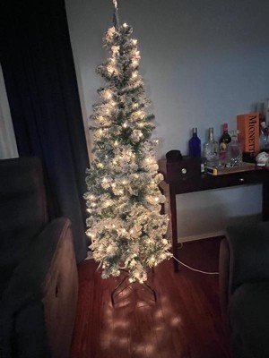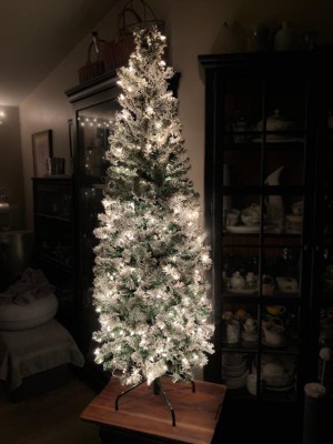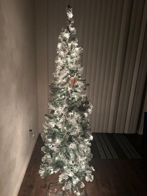 [This review was collected as part of a promotion.] I’m very happy with this 6 ft. pre-lit Acacia pencil slim flocked tree. The slim profile is perfect for smaller spaces or corners without feeling cramped. Setup was quick and easy thanks to the hinged branches, and the metal stand feels sturdy and secure. The flocking gives it a beautiful snowy look, and the clear lights are evenly distributed and bright without being harsh. Overall, it looks elegant and well-made and adds a cozy holiday feel to the room.