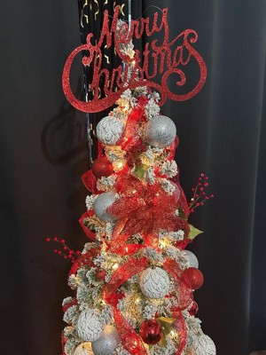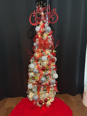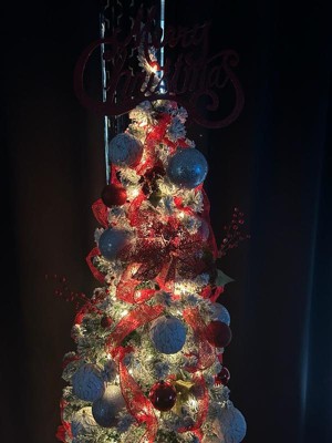 [This review was collected as part of a promotion.] Every year we do a unique and different tree. A black Nightmare Before Christmas one. A green crooked Grinch one. This year i wanted to do something clashing and delicate almost. I wanted crystals and small splashes of red. It was beautiful. But as mom i had to add the ornaments that my kids have made over the years. And the "sweetest Mom ever" my 9 year old bought from the school fair with his own money. My tree was beautiful and now its perfect. The snow stayed on the branches so well. All my life I've thought these trees were fragile but it isn't. I like the slim shape cause it fits perfectly in the spot we chose for it. The lights are bright but I kept them in white so in future years we can change the color theme. I absolutely love this tree! It took seconds to put together and only moments to fluff it out. Easiest tree assembly ever. The box it came in is sturdy and strong and we will be able to store it in there for years to come. With the price of it i will definitely be using it for years to come and definitely will purchase more styles for future use.