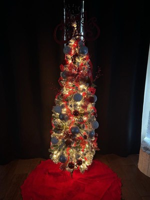 [This review was collected as part of a promotion.] One of the most beautiful Christmas trees. She's a pencil style Christmas tree too it's perfect for smaller spaces such as apartment buildings, the office or a master suit! The frock is stunning!! The lights are nice and bright with still being warm and cozy. One of the most beautiful Christmas trees I have ever seen. You don't even need to add any additional decor. 11/10.
