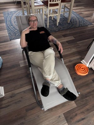 [This review was collected as part of a promotion.] We are loving this chair! My husband got it set up in about 15-20 minutes. It is very lightweight and easy to move around. My husband has been lounging in it working most of the day and is very comfortable. It’s very nice!