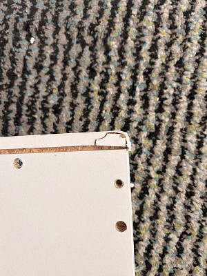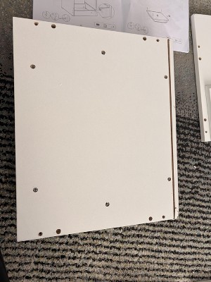 I only put together one night stand so far. It was damaged as soon as I opened the box. The shelves are crooked and not closing smoothly how they are supposed to. Very disappointing. The only good thing about this night stand is the LED lights. Poorly made in general. The bracets from the shelves were also dented which unfortunately I don't have a picture of. But maybe that's why shelves are not sliding smoothly.