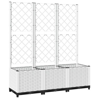 Household Essentials Raised 2 Tier Plant Stand with Two Interchangeable Shelves, White Resin Woven Planter and Tray with Decorative Wire Frame