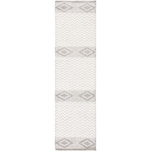Elevate your living space with the timeless elegance of our hand-woven runner rug, crafted with care in India. This sophisticated 2'-3" X 8' runner is not just a floor covering but a statement piece in your home, showcasing a striking geometric pattern that combines the classic contrast of ivory and black hues. Its 1/4" pile height is a luxurious yet practical choice for high-traffic areas, providing both comfort and ease of maintenance.