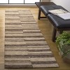 The runner's color palette of natural and brown tones offers an organic feel that easily harmonizes with your existing decor. Its visually striking pattern, as evident in the accompanying image, features a series of horizontal lines in varying thicknesses, creating a sense of movement and subtle sophistication.
