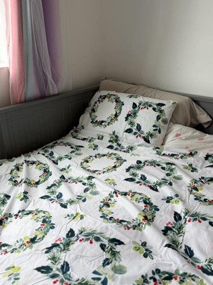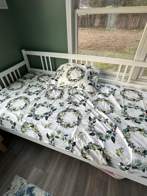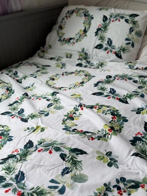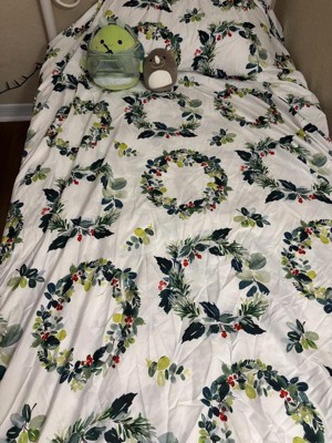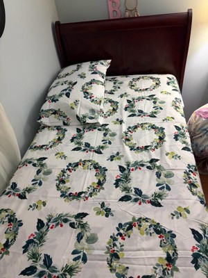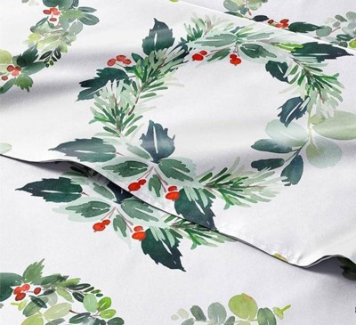 [This review was collected as part of a promotion.] Look how stinking cute these wreaths are! The sheets feel very cooling. I’m excited to have a seasonal set of sheets for the kids. It’s so cute and so festive.