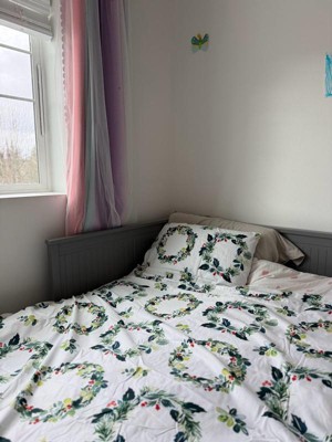[This review was collected as part of a promotion.] Thank you for my complimentary sheet set! The watercolor wreath pattern is prefect for the holidays and they're super soft! These will look so cute on my kid's twin bed this winter