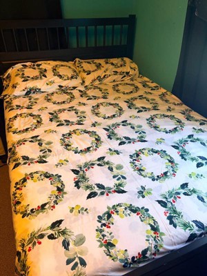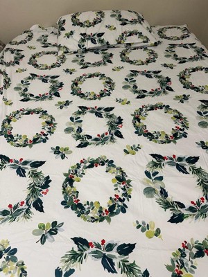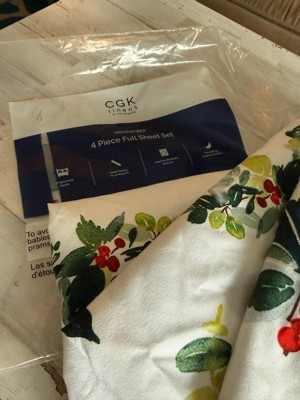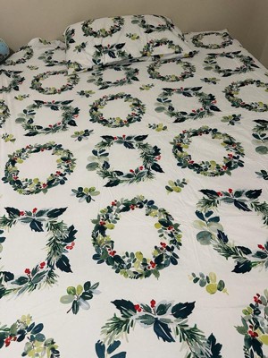 [This review was collected as part of a promotion.] I liked this CGK Unlimited brand Christmas holiday wreath pattern of this full size sheet set. The holiday wreath decor is very festive and perfect to use on the bed for my guests during the holidays. The set contained 4 pieces, the fitted sheet, 2 pillow cases, and a cover sheet. This set fit perfectly on my full size bed. The quality is good, medium level thickness, and the stitching is on point. The material feels soft, and smooth to the touch--quite comfortable, & perfect to provide a good night's rest. I love that these sheets are machine washable too, so they're easy to launder. Overall, a good quality, comfy sheet set that is perfect for the Christmas holidays.