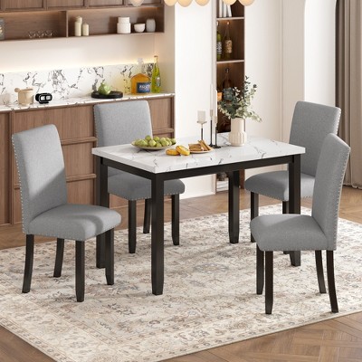 Whisen 6-Piece Family Foldable Table Dining Set with 4 Chairs and Bench - Gray
