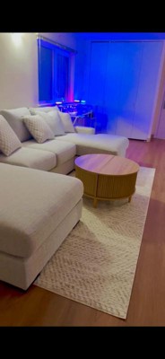 We just love this rug , is just beautiful and it feel amazing , it s perfect for our new Ashley U sofa .