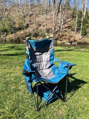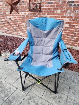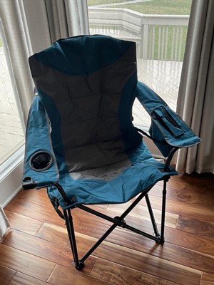 Arrowhead Outdoor XXL Folding Padded Camping Chair w/Cup & Wine Holder, Armrest Cooler, Support up to 600 lbs (Ocean Blue)