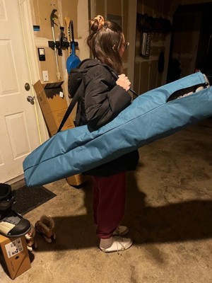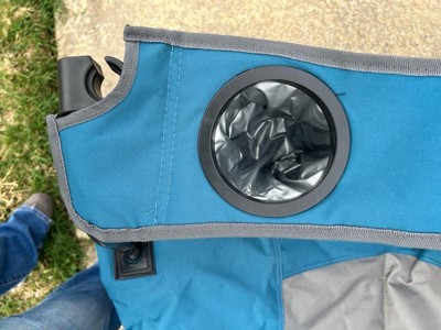 [This review was collected as part of a promotion.] This is a HUGE and cozy chair. Has attached spot for chair cooler and a drink holder. Love the color and it’s easy to open/set up. It’s comfortable too! My only issue is that it was quite hard to get it back into the bag. My fiancé had to help me put it back in and even with the two of us it was difficult to fit and don’t get in quite right. This might be annoying if using the chair a lot.