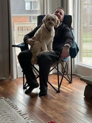 [This review was collected as part of a promotion.] I love all the details that this chair brings! Not only is it large and comfy, it also has multiple compartments to store things in. The best part, a wine glass holder for fun evenings! The opposite side has a cooler for the guys beers. Don’t forget the side pockets to store doggy treats! The legs are very thick and sturdy!