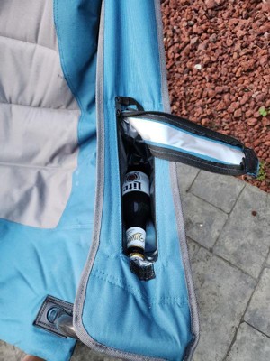 [This review was collected as part of a promotion.] Wow this is amazing! The camping chair comes with a cup holder, pockets for storage, and a drink compartment! It makes camping so much better and easier! I use it to sit in the front yard and relax. The quality is great. It also comes with a chair cover that's for traveling when you fold the chair up. And the blue color is nice!