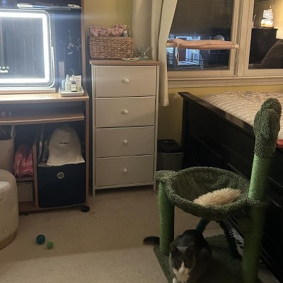 Very satisfied with this dresser! It’s surprisingly sturdy and very easy to assemble. The fabric drawers slide out easily and we’ve had no issues so far. I’m using it as a baby dresser since I don’t have a lot of of space in my apartment