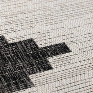 About: Looking for a stylish and durable area rug that can be used both indoors and outdoors? This beautiful outdoor rug features a modern Aztec design in black and off-white, making it the perfect addition to any space. Whether you use it in your living room or on your patio or porch, this rug is sure to make a statement.. Brand: Hauteloom. Collection: Djugun. Colors: Black, Charcoal, Off White. Construction: Machine Woven. Material: 100% Polypropylene. Pile: No Pile. Styles: Contemporary. Outdoor Safe: Yes. Made In: Turkey. Thickness: 0.16".