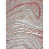 A: The rug showcases a luxurious marble pattern with a contemporary and abstract design.