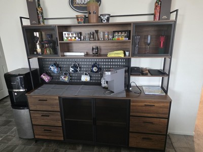 Famapy Brown Woodgrain Multifunctional Kitchen Cabinet Kitchen Sideboard with Hanging Shelf Display Shelf