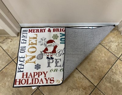 [This review was collected as part of a promotion.] I love this rug! It's perfect to welcome people (and yourself) to your home during the holidays. It's so bright and cheery. I love the red color and how it pops and I adore the writing of merry Christmas. It's also nice and soft. Easy to clean. It's a great addition to my Christmas decorations. Highly recommended.