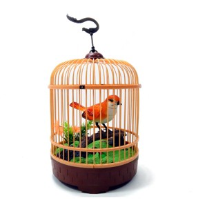 All you have to do is create a sound near the bird on the branch and it will start to shake its head, open its mouth, shake its wing and tail and sing a bird song.The bird's bright singing will relax your body and mind and bring you back to the great nature, where you can be entirely freed from worry and enjoy a moment of placidity.Features:A beautiful decoration for your homePowered by 3 x AA batteries (not included)Sound activated - bird flaps and sings when there is a noiseSound activation works by detecting increase in noise level, so it will work even in noisy environmentsCan be used as a security device (bird things when someone makes noise)The cage measures 27cm tall (10.5") and has a diameter of 18cm (7")