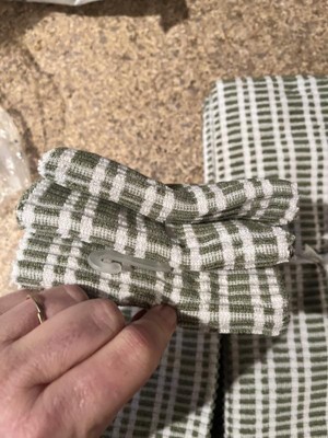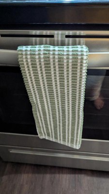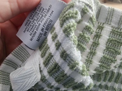 I love how soft and textured this kitchen towel is, and how quickly it dries my dishes or hands, as needed. I feel the towel is just the right thickness to absorb water easily and quickly, or even the small occassional kitchen spill/mess. The color and pattern definitely feels more modern, and fits many styled homes, and looks beautiful in my space. The tag also has very easy laundering instructions, which I personally appreciate.