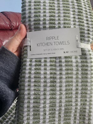 These KAF Home Ripple premium terry kitchen tea towels are made of 100% cotton, and come in a set of 6 oversized towels. Thick and plush, these towels are the perfect tool for drying, cleaning, and soaking up household spills. Absorbent terry cloth loops soak up spills and are soft to touch. Yarn dyed and made of premium yarns, these towels are built to perform and built to last.