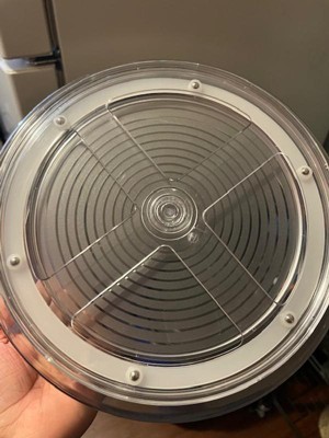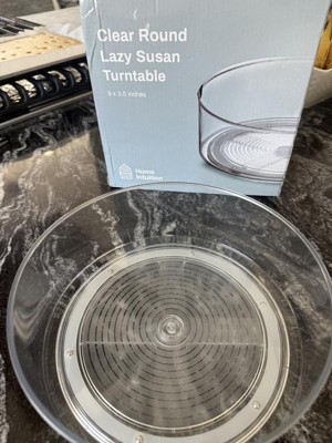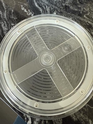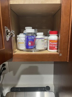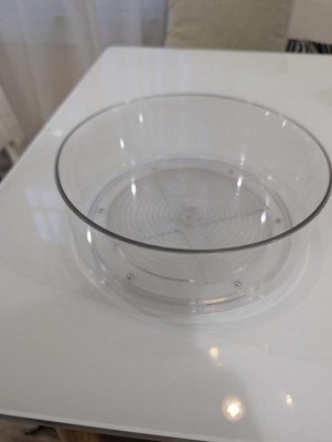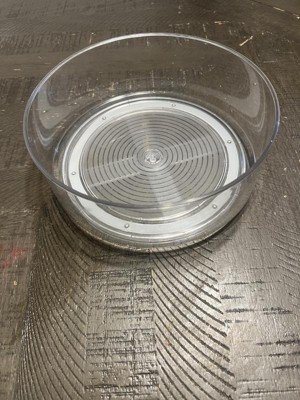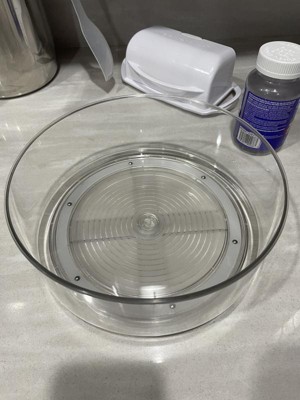 This is a nice organizer to help you arrange things in a small space. It has a 9-inch diameter. I find it a little too plain and cheap looking to put it somewhere prominent like a tabletop, but I think it's good for a shelf or cabinet. The clear material allows you to easily see what it holds, and the swivel of the turntable is smooth. One possible use is for storing something in your kitchen cabinet, like spices.