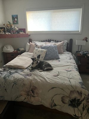 [This review was collected as part of a promotion.] This set is beautiful! I absolutely love the blues and purples of this set! The watercolor flowers are my style too. I have a queen size bed, but got the king size. Personally, I prefer the king size comforter size on my bed more than queen. I was able to use the bed skirt too because one two sides of my bed are up against the wall. I was washing the bedskirt. My dad got to it before I had time to hang it up. He put it in the dryer and it melted the middle part. So make sure you hang it up! Overall, I do recommend!