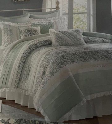 [This review was collected as part of a promotion.] The Madison Park 9 piece comforter set is a very beautiful set. The details of this comforter set over exceeded my expectations. The lace overlay on the quilt and the little details on the pillows makes this set a welcome addition to my bedroom. The set comes with the comforter, 2 sets of pillow shams, 3 decorative pillows and a beautiful white dust ruffle. The quality of the comforter is very thick and soft. This set will definitely not disappoint you