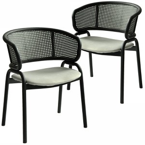 LeisureMod Ervilla Modern Dining Side Chairs Set of 2 – Cozy Upholstered Accent Armchairs with Black Iron Legs, Kitchen, Dining Room, Cafe, Restaurant