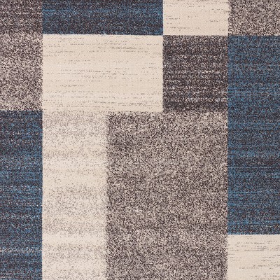 World Rug Gallery Modern Boxes Design Non-slip (Non-skid) Area Rug - Blue 2'7"x12': Geometric, Low Pile, Pet Friendly