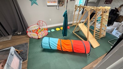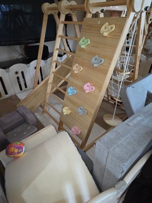 This indoor jungle gym is a fantastic addition for families looking to keep their kids active during colder months. With sturdy wood construction and a variety of play options, it offers a safe environment for children to explore and develop their skills. While assembly can be time-consuming and challenging, the end result is a well-built playset that provides endless fun for toddlers and young children. Guests appreciate its compact design and versatility, making it a worthwhile investment for indoor play.
