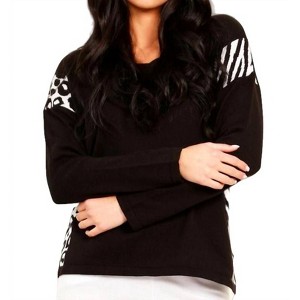 A long sleeve top you can wear with denim, skirts, well... just about anything!Cotton/Acrylic Blend. ANGEL top. Animal Print Detail. V-Neck. Long Sleeve. Hits at waist. Delicate hand wash or dry clean. Imported